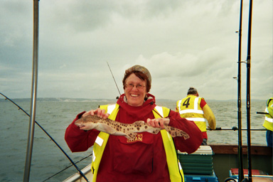 Some headed for the shelter of Portland to seek the Wrasse, Pollack & Garfish others headed into the bay to search out the Dogfish, Pout, Gurnard, Scad, Bream, etc. Young Ryan Casey made an impressive start on Al’s-Spirit when he took a Bream/Gurnard double shot. On Atlanta Malcolm Ruff stated that he required a Bull Huss for his yearly specimen hunt, sometimes our best laid plans do not always work, not that the Bull Huss were not playing as Patricia Shortt fished next to Malcolm and managed to catch 3 of them, 3-0 to Pat. Pat also managed to land a conger without her butt pad, that she decided she would not need!